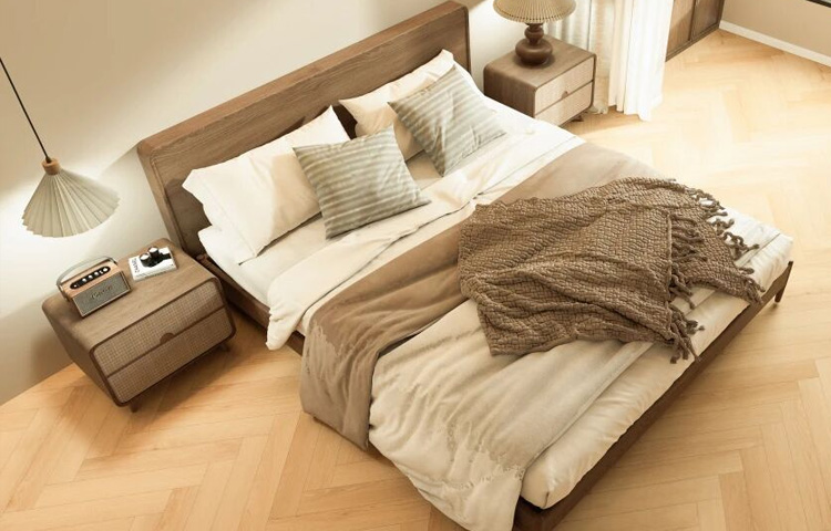 45°斜向拼接,似枝椏交錯(cuò),又若雁陣南飛,人字拼賦予靜態(tài)地面以流動(dòng)的韻律,每一片精準(zhǔn)咬合,彼此承接,形成視覺上的綿延感,讓視線與心境,隨之舒展、向前